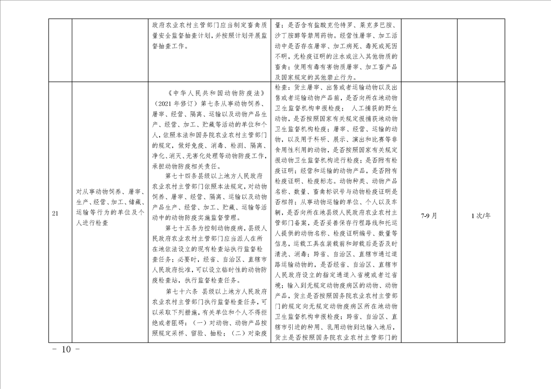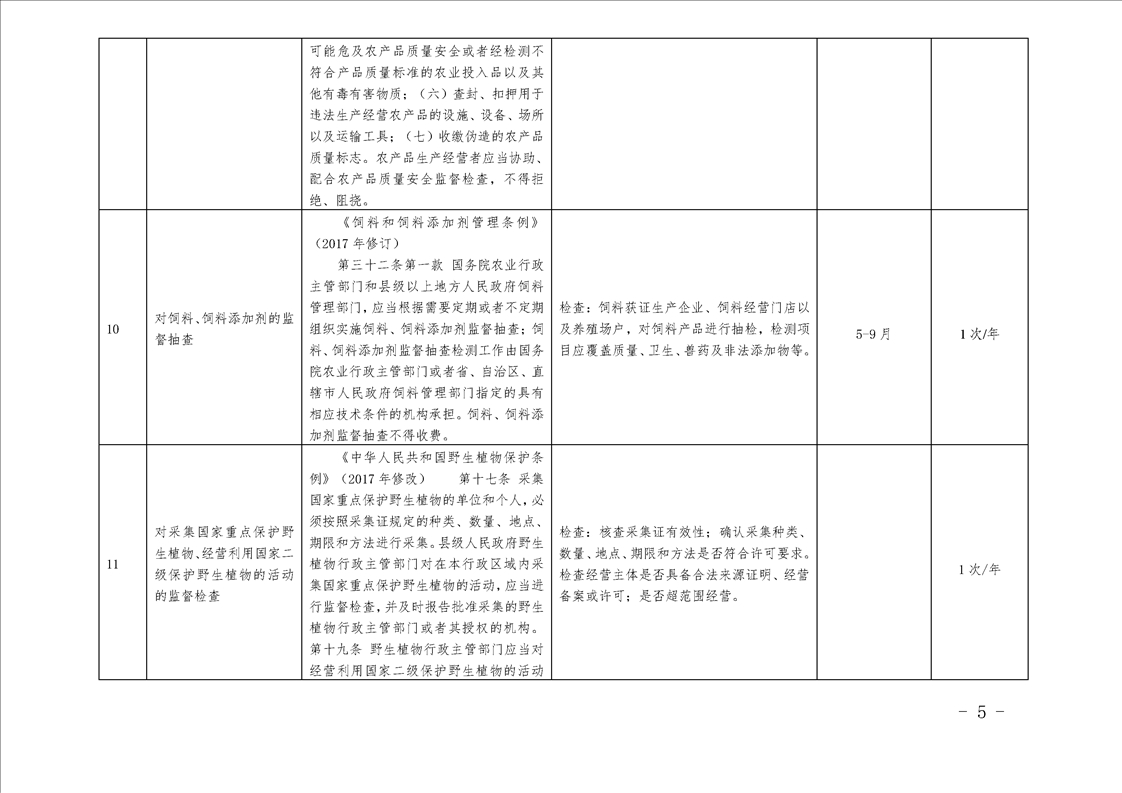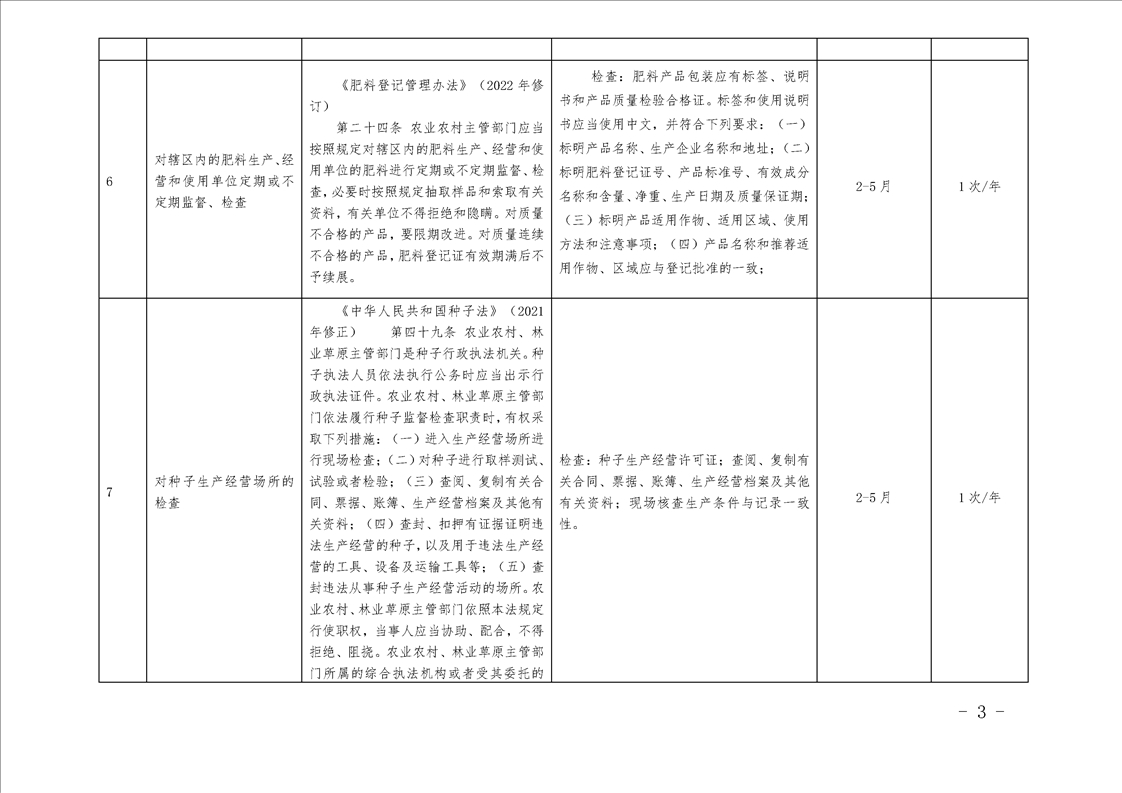 汉中市农业农村局行政检查事项目录